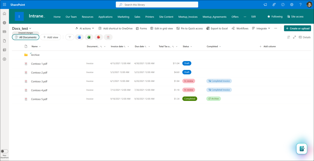 The new column is designed to simplify the entire process – instead of clicking through the menu options, you have a dedicated button next to your list item or a document. This approach makes it easier to use in real-life scenarios. It offers the same set of features as the global feature (and the same limitations).