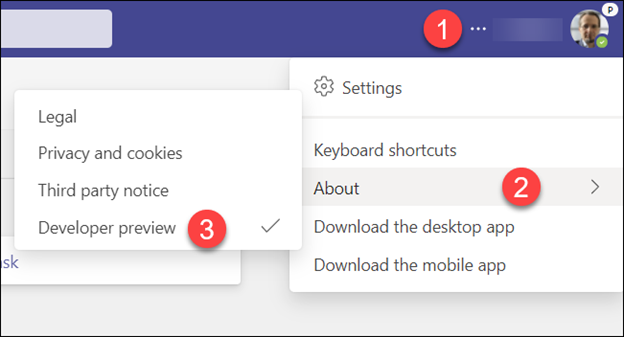 In Teams application open ellipsis (…) -> About -> Developer preview. If it’s enabled, you can see a small P icon on your profile picture.