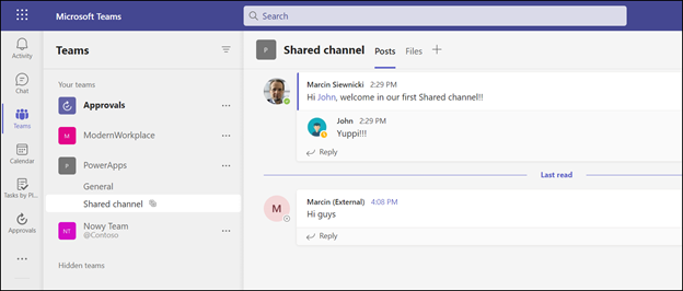 Shared channels shine when it comes to collaborating with external users. You can collaborate with your vendors, partners, or customers. One environment for all communication and work. You can create files, upload data, communicate, and even create channel meetings (external users can’t create channel meetings but can join the existing meeting).
